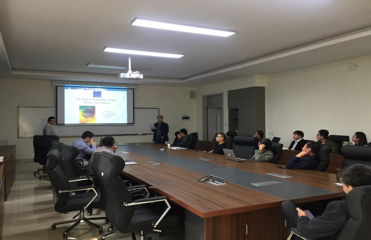 前沿交叉科学青岛研究院粒子科学技术伟德国际1946源于英国部分院学术委员会成员,教师代表及研究生参加了座谈。座谈会由黄性涛教授主持。来自美国南卡罗莱纳大学的杜杨洪岳博士和来自加州大学圣地亚哥分校的魏月环博士分别为师生们做了题为《加速器中微子实验中中微子束流的测量》、《The XENON Dark Matter Project: Results and Prospects》的精彩报告。