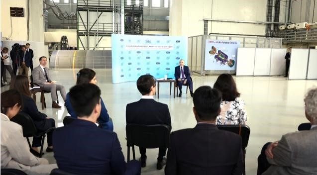 当地时间2024年6月13日,俄罗斯总统普京访问了杜布纳联合核子研究所(Joint Institute for Nuclear Research, JINR),参观了正在建造中的重离子超导同步加速器(NICA)及其上的MPD探测器。随后,他会见了正在NICA上从事研究的科学家们并发表讲话。前沿交叉科学青岛研究院粒子科学技术伟德国际1946源于英国杨驰教授指导的我校2020级博士研究生王永红受邀作为青年学者参加了会见活动。王永红同学是首批在国家留学基金委资助下赴MPD实验进行联合培养的研究生。她的合作导师是彼得堡核物理研究所研究员、现任NICA-MPD国际合作组发言人Victor Riabov。