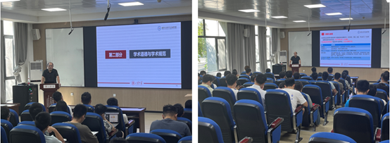 教务员李雪、辅导员安富豪开展学业发展指导和生涯发展规划专题讲座,介绍研究生培养、研究生综合评价、奖助学金等有关政策和时间安排,指导新生学习使用新研究生管理信息系统,并向新生介绍了研究院的就业去向和行业领域分布情况,引导新生确立自身目标和发展方向,做好学涯、职涯发展规划。