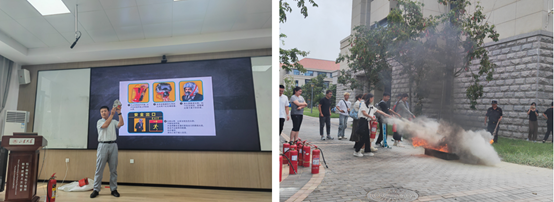 青岛校区党工委保卫部孙垚给全体新生讲解校园安全和消防安全的相关知识。孙垚首先介绍了青岛校区及周边的基本情况,提醒广大师生严格遵守各项安全规定,防偷防盗、注意校园交通安全、电动车安全,保护好个人生命财产安全。随后,孙垚就灭火器、灭火毯、防毒面罩的使用和火灾逃生演练进行详细讲解,并带领全体新生开展消防安全演练,提升新生安全意识,掌握消防安全技能。