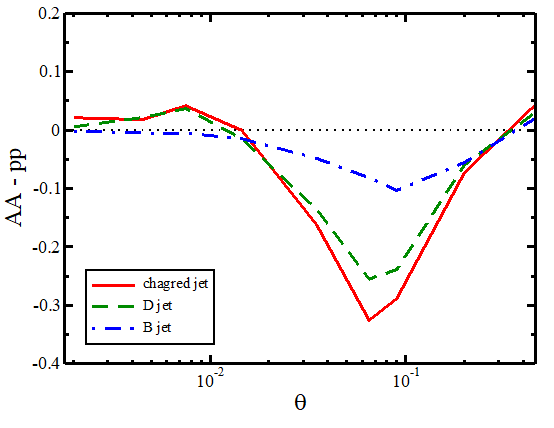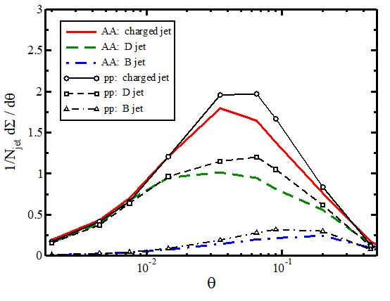 高能核子或原子核碰撞会产生极高能量的夸克与胶子,随后经部分子簇射与碎裂过程形成可被探测的强子束,被称为喷注。QCD理论预言,大质量高能粒子在其运动前向的锥角内簇射过程会被明显压低,被称为“死角效应”。对死角效应的研究是检验并发展QCD理论的重要途径之一。2022年,LHC-ALICE实验组在质子-质子碰撞实验中利用迭代分簇技术标定了D介子喷注和单举喷注的各次劈裂顶点与劈裂角度,并通过对比这两类喷注的劈裂角首次证实了重味夸克的死角效应,成果发表于《自然》杂志。然而,重离子碰撞中的死角效应以及极端高温环境下强相互作用物质对死角效应的影响暂未被实验验证。