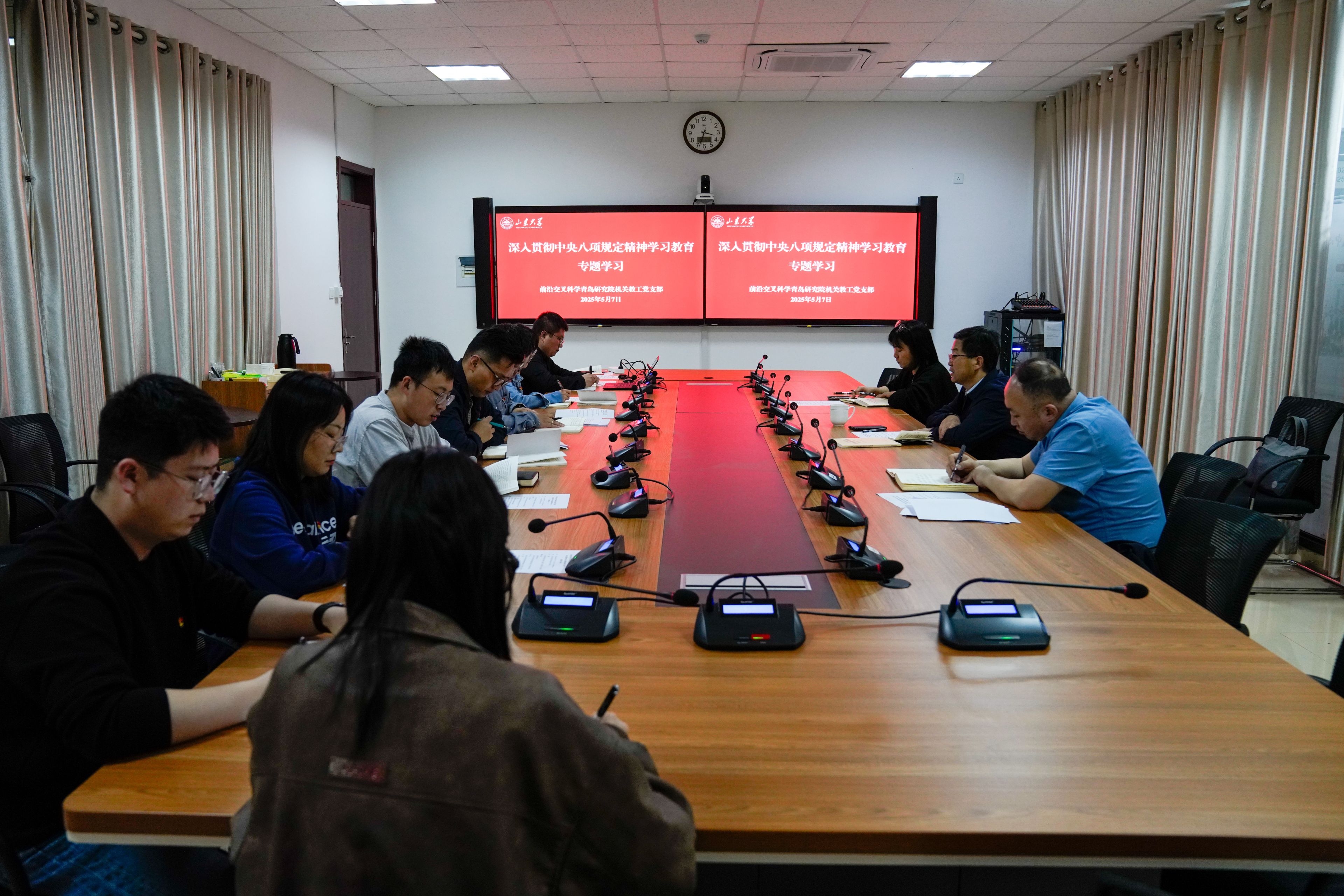 5月7日下午,前沿交叉科学青岛研究院机关教工党支部开展深入贯彻中央八项规定精神学习教育专题学习。学校党委副书记陈宏伟参加专题学习并作总结讲话。