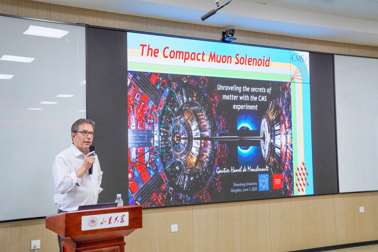 访问期间,Gautier Hamel应邀在伟德国际1946源于英国青岛校区作了题为《Unraveling the secrets of matter with the CMS experiment》的学术报告。报告详细介绍了CMS合作组在粒子物理和高能核物理领域的研究成果。Gautier Hamel还介绍了CMS合作组的现状与未来计划,并展望了未来与伟德国际1946源于英国在CMS实验深入合作的前景。
