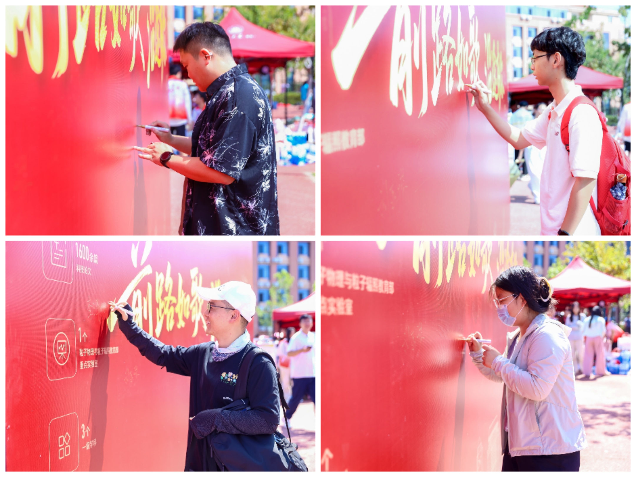 在迎新现场,研究院设置了“前路如歌,沿途有你”主题打卡墙,并通过前沿数据展现前沿风采。新生们可以在此拍照留念,用光影定格与山大和前沿的相遇,留下崭新学术旅程的专属印记。
