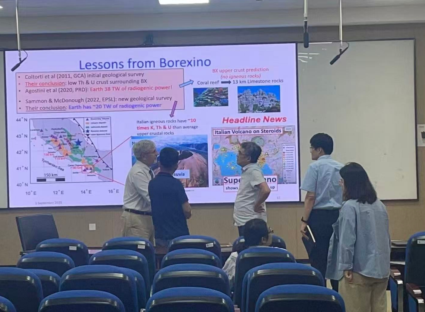 这次座谈会的内容主要围绕地球的地热起源和中微子测量展开。座谈会上,双方以“地球地热起源”和“中微子测量”为核心,展开了富有建设性的讨论。会议重点在于推动地球物理学与粒子物理学的交叉融合,旨在通过中微子数据为地球内部热源分布提供直接约束。通过深入交流,双方明确了在联合研究、数据共享与技术互补等方面的巨大潜力,并就下一步合作事宜达成了初步共识,标志着跨学科合作进入了实质推进阶段。
