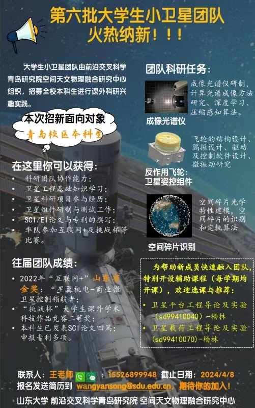 第六批大学生小卫星团队招新啦!