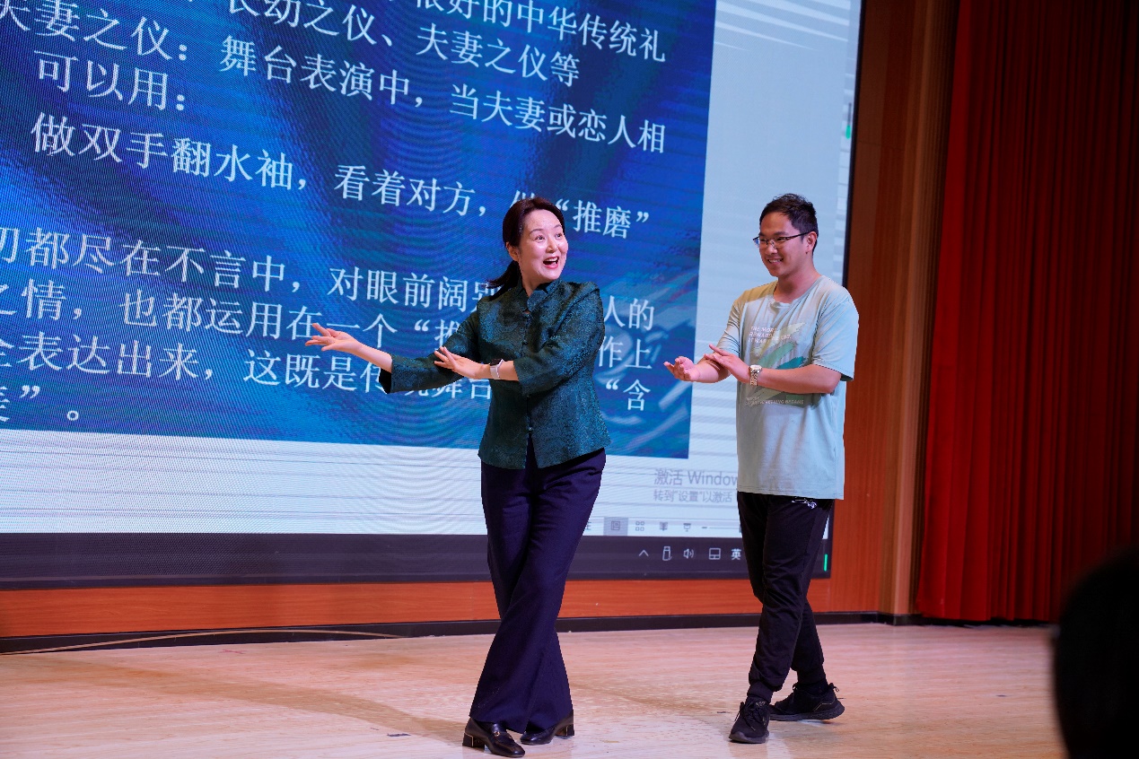 讲座上半场,刘静带来了“感受昆曲之美——春色如许”学术报告。刘静指出,昆曲作为我国传统剧种,其完整性、丰富性与历史性显著,具有独特的音韵美、服装美、动作美和典雅美。而在当代信息社会,传统剧种昆曲也有了融合时代的发展,不断年轻化、包容化,昆曲不再是被“束之高阁”的艺术,而是融入了社会各层,广泛传播。