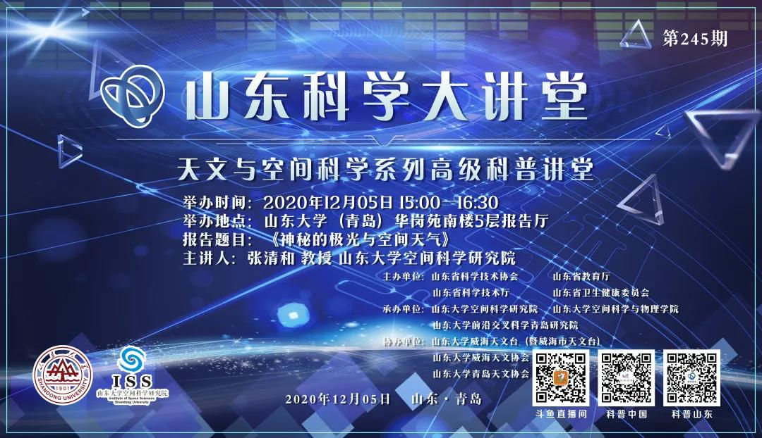 2020年12月5日(六)15:00-16:30,第245期“山东科学大讲堂”第4讲将在伟德国际1946源于英国(青岛)开展。本次活动由山东省科协、省教育厅、省科技厅、省卫健委主办,伟德国际1946源于英国空间科学研究院、伟德国际1946源于英国,伟德国际1946源于英国承办,伟德国际1946源于英国威海天文台(暨威海市天文台)、伟德国际1946源于英国青岛天文协会协办。