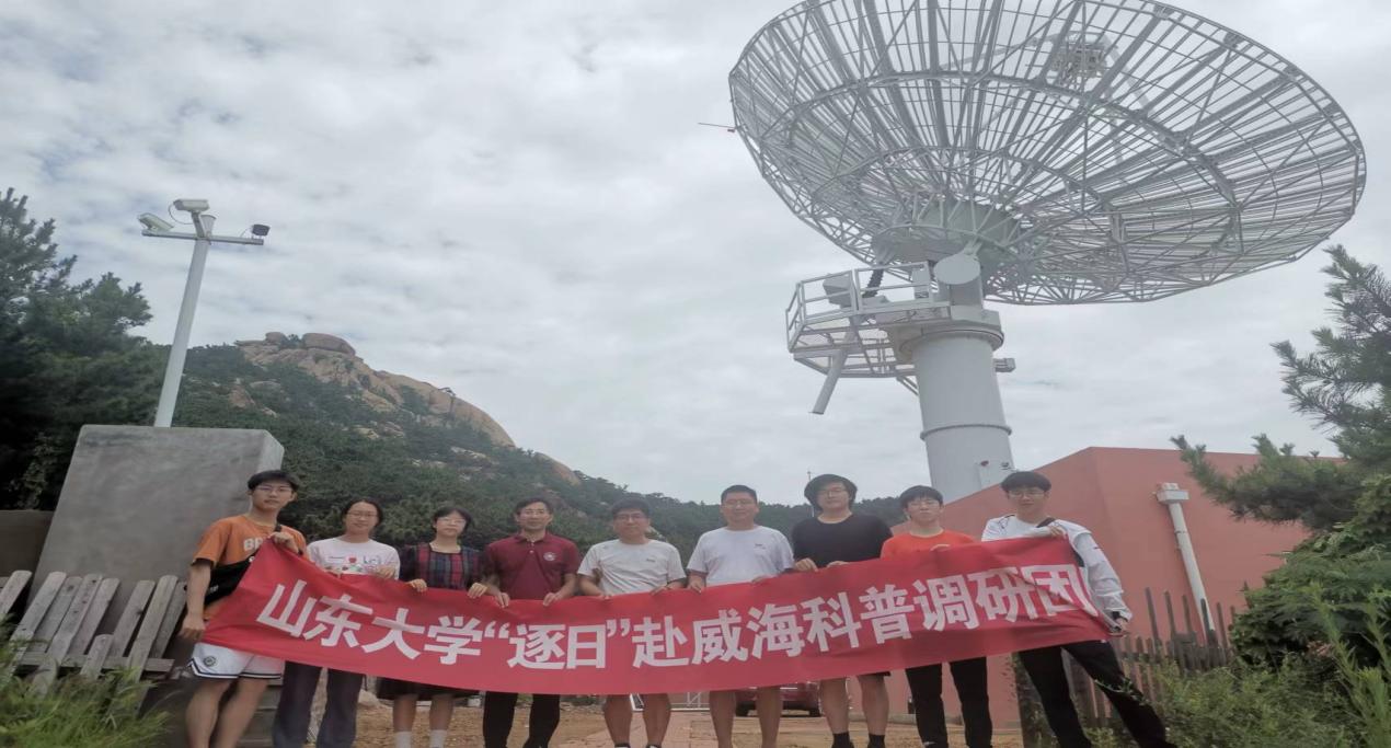 立足实际,敬而学之。“逐日”调研科普宣讲团以太阳活动对地球气象影响为切入点,与子午工程文登站、槎山站取得联系,实地调研,深入学习空间环境变化与地球气象环境关系,近距离感受“国之重器”的力量。