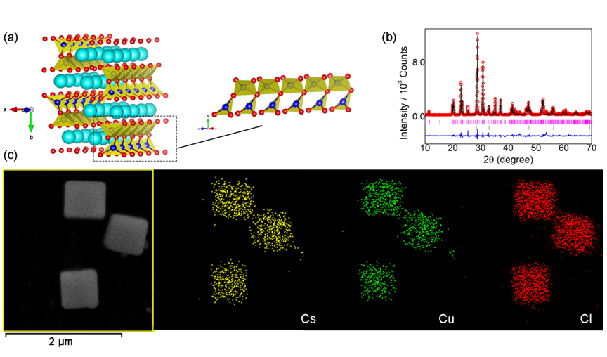 寻找发光量子产率高, 低成本,对环境无害的发光材料一直是电致发光领域发展的目标。对于传统的发光二极管,例如有机发光二极管,复杂的制作工艺提高了生产的成本,不利于商业化应用的推广。近些年来,含铅卤素钙钛矿由于简单的制作工艺和优异的光电性能成为发光材料领域的明星材料。然而,铅的毒性问题成为限制钙钛矿市场化应用的瓶颈。如何制备一种兼具高发光效率,低成本,无毒三个特性的发光材料,成为科学家关注的热点。