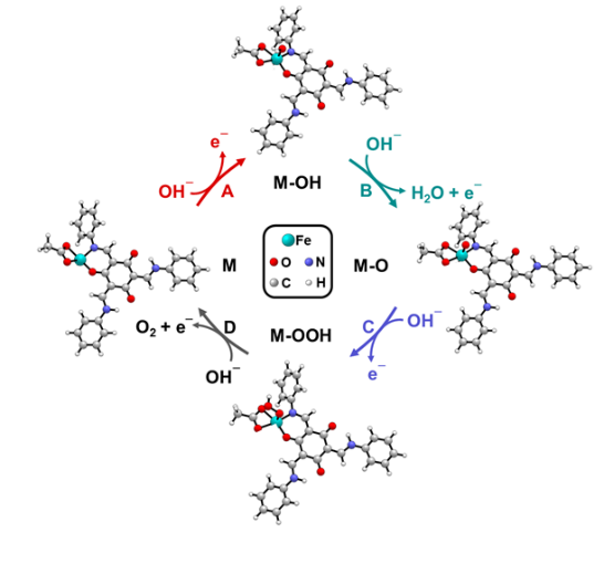 开发环境友好、价格低廉的高活性电化学析氧(OER)催化剂对大规模电化学生产可再生燃料至关重要。在本工作中,该团队报道了一例限域在共价有机框架材料(COF)内的铁单原子催化剂(Fe-SAC@COF),其具有独特的Fe-NO配位模式。同其它金属单原子(如Ni-SAC@COF)及铁团簇基(Fe-NP@COF)催化剂相比,Fe-SAC@COF展现出更高的质量活性,以及更加优异的OER过电势(290 mV)和Tafel斜率(40 mV/dec)。其活性超过目前已报道的Fe基单原子OER催化剂。密度泛函理论计算阐释了Fe-NO配位同其它配位方式相比具有更低的含氧中间体结合能,从而具有最低的反应能垒。本工作为高效OER电催化剂研究提供了一种新的设计策略。