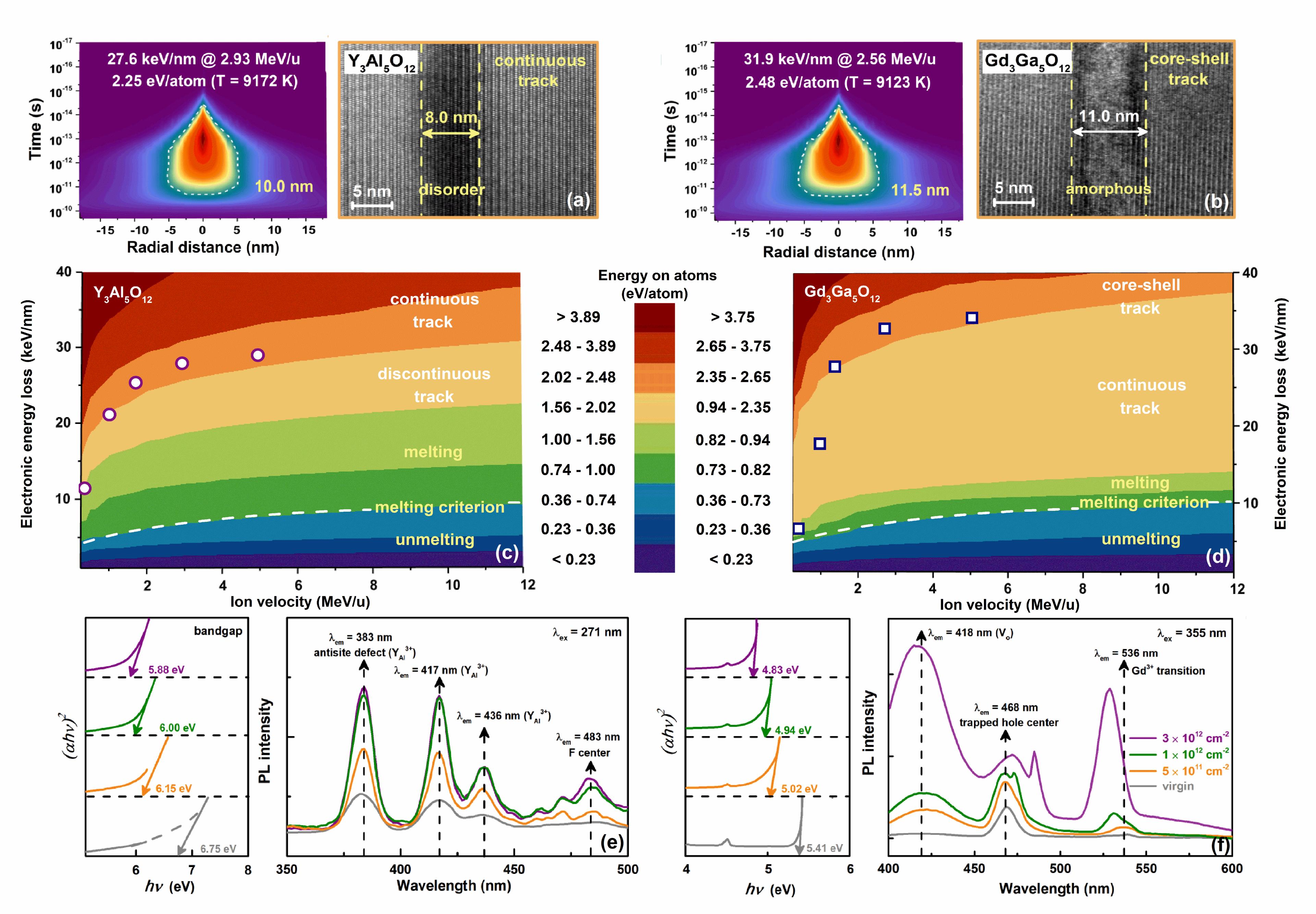 近日,前沿交叉科学青岛研究院粒子科学技术伟德国际1946源于英国刘鹏副教授在辐照效应研究领域取得进展,围绕强离子辐照环境下电子能损机制诱导径迹损伤效应的研究结果以“Structural Damage and Recrystallization Response of Garnet Crystals to Intense Electronic Excitation”为题发表在Advanced Functional Materials期刊(IF=19.92),伟德国际1946源于英国,伟德国际1946源于英国博士研究生韩心晴为论文第一作者,橡树岭国家实验室Eva Zarkadoula研究员、马德里自治大学Miguel L. Crespillo教授、伟德国际1946源于英国,伟德国际1946源于英国刘鹏副教授为论文共同通讯作者;以“Nanostructures evolution assessment and spectroscopic properties modification induced by electronic energy loss in KTaO3crystal”为题发表在Materials & Design期刊(IF=9.42),韩心晴为论文第一作者,Eva Zarkadoula研究员、刘鹏副教授为共同通讯作者;伟德国际1946源于英国均为第一完成单位。