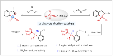 含有硅手性的有机硅化物因其独特的结构和性质, 在有机合成、功能材料及生物医药等领域展现出特有的价值和应用前景。因此,如何高效构建硅中心手性有机硅化物逐渐成为了有机化学家们的研究热点。近日,伟德国际1946源于英国,伟德国际1946源于英国分子科学与工程研究院李兴伟教授团队实现了铑催化简单易得苄醇、亚胺与二级硅烷的不对称[4+1]环化反应,高效地合成了含有硅手性的杂环化合物。相关成果以“Rhodium-Catalyzed Enantioselective Formal [4+1] Cyclization of Benzyl Alcohols and Benzaldimines: Facile Access to Silicon-Stereogenic Heterocycles”为题,发表在国际著名期刊Angew. Chem. Int. Ed.上。博士后申兵学为本文第一作者,李兴伟教授、于松杰教授和天津大学黄跟平教授为通讯作者,伟德国际1946源于英国为该论文的第一完成单位。