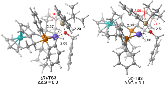 天津大学黄跟平教授对苄醇羟基硅化过程进行理论计算,发现 (R)-TS3、(S)-TS3硅氧键还原消除过渡态能量差值为3.1kcal/mol,该差值可以很好吻合实验过程中得到优秀的立体选择性的结果,并说明硅氧键还原消除是整个过程中的立体决定步骤(图四)。