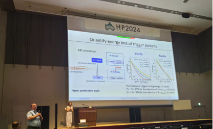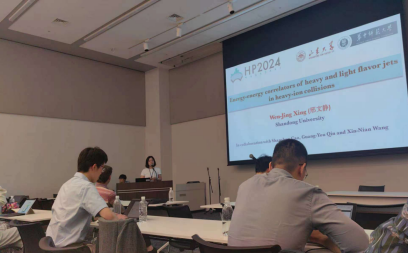 本次会议重点讨论了在高能原子核-原子核、质子-原子核和质子-质子碰撞中研究高温致密QCD物质硬探针的实验和理论发展。在本次会议上,易立教授和聂茂武副研究员指导的博士生何杨做了“Deciphering the nonintuitive enhancement of recoil jets in heavy-ion collisions”的口头报告,揭示了反冲喷注核修正效应的基线远大于传统预期的单位值,进而成功解释了近期实验测量值在高横动量区域远大于 1 的现象。曹杉杉教授合作的博士后邢文静做了“Energy-energy correlators of heavy and light flavor jets in heavy-ion collisions”的口头报告,预言了喷注能量关联函数可以作为探究重夸克劈裂过程中死角效应的灵敏观测量。