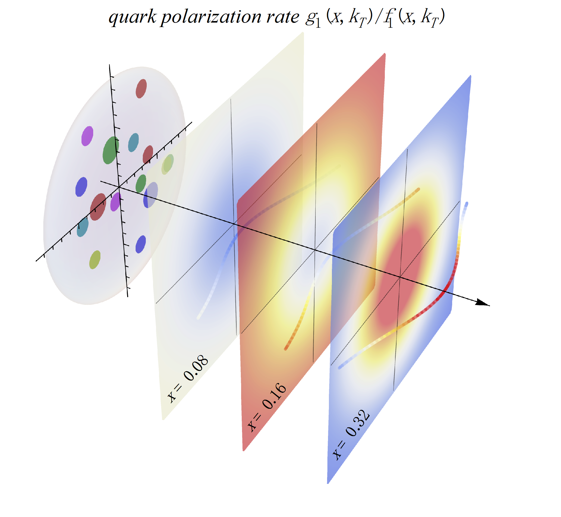 近日,来自北京大学、伟德国际1946源于英国、中国科学院近代物理研究所的研究团队—横向核子层析合作组—在质子自旋结构研究中取得突破性进展,首次成功提取了质子中横动量依赖的部分子螺旋度分布函数(TMD helicity distributions)。这一研究成果以“First Extraction of Transverse-Momentum Dependent Helicity Distributions”为题发表在《物理评论快报》(Physical Review Letters)。
