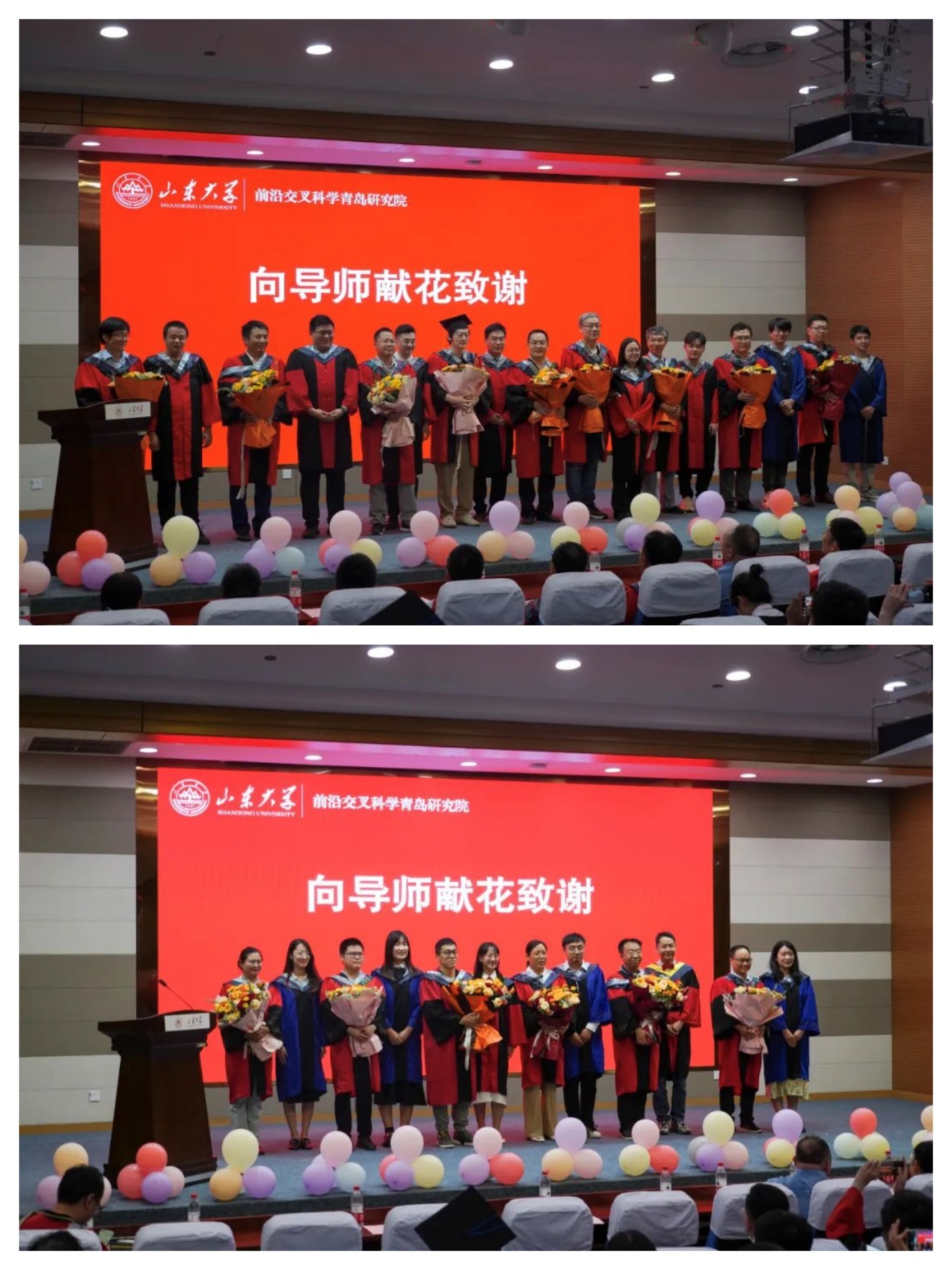 在学位授予仪式环节,韩圣浩为每位毕业生拔穗颁发学位证书并合影留念。在悠扬的旋律中,前沿交叉科学青岛研究院2023年学生毕业典礼暨学位授予仪式圆满完成。