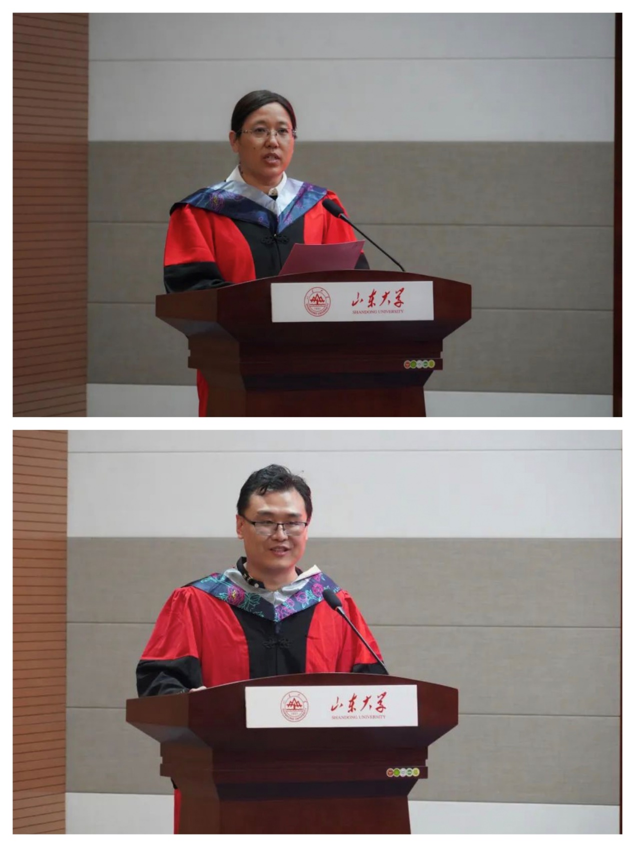 博士毕业生代表韩心晴、硕士毕业生代表孟璇在发言中回顾了求学期间的成长与收获,表达了对母校、研究院和老师们的衷心感谢,并表示在接下来的日子里,无论身处何处,都会与山大共同成长,将时刻秉持“为天下储人才、为国家求富强”的责任担当,不忘“学无止境、气有浩然”的校训教诲,秉承山大精神,弘扬山大文化,不断向科技难题发起冲锋,为国家做出应有的贡献。