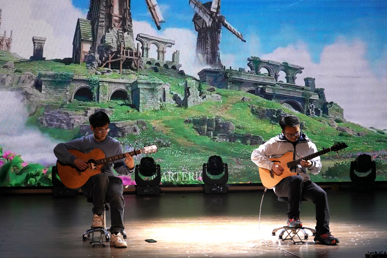 双人吉他指弹如风儿的窃窃私语,轻柔悠扬。指尖舞动,音符如风的涟漪荡漾,引人迷醉。