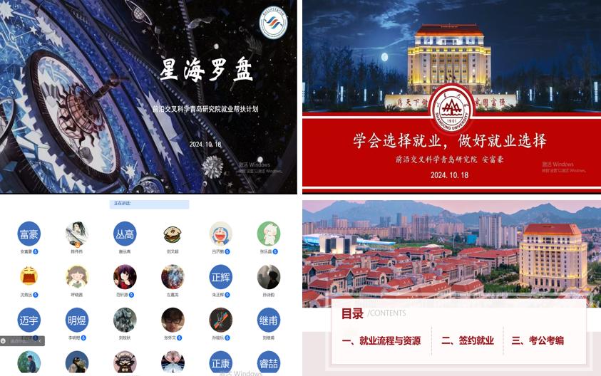 10月18日晚,前沿交叉科学青岛研究院开展“星海罗盘”就业帮扶计划之就业政策专题讲座。本次活动由辅导员安富豪为大家讲解就业流程以及相关的就业政策,研究院本硕博80余名同学参加讲座。