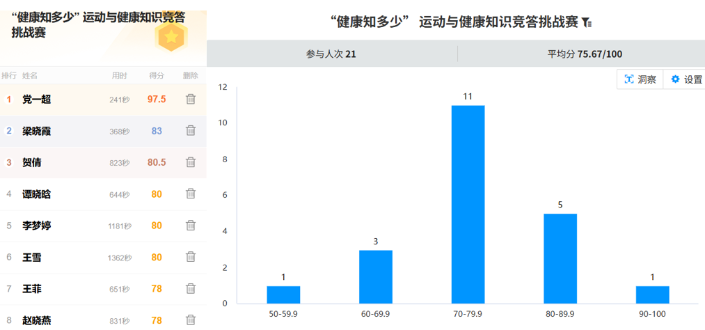 近日,研究院2024级博士团支部成功举办“健康知多少”运动与健康知识竞答挑战赛。本次活动以线上答题形式展开,共有21名支部同学积极参与,通过知识竞答,促进了参赛者对健康知识的扎实掌握。