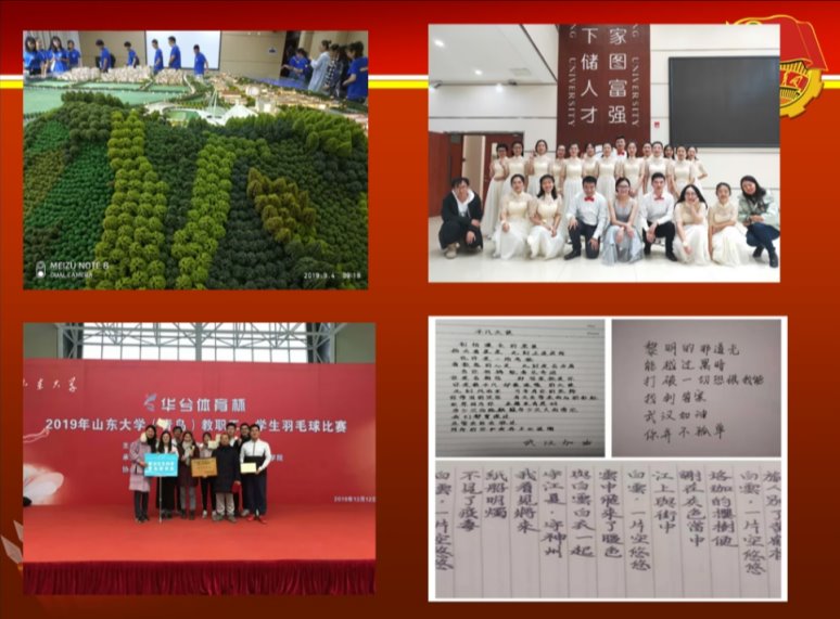 随后,各基层团支部团支书进行答辩,本次答辩采用PPT和语音结合的方式。分子团支书王艺颖和粒子团支书张晴分别介绍了自己的团支部组成,汇报了团支部的思想政治教育及理论学习情况、团支部工作制度及学生工作、团支部建设的未来规划,并且展示了各自团支部的活动与所获成果,充分显示出研究院蓬勃向上的精神面貌。值得一提的是,各团支部在疫情防控工作中都充分发挥了基层团组织的作用,深入了解了同学们居家的学习生活情况,增强了团支部的凝聚力。