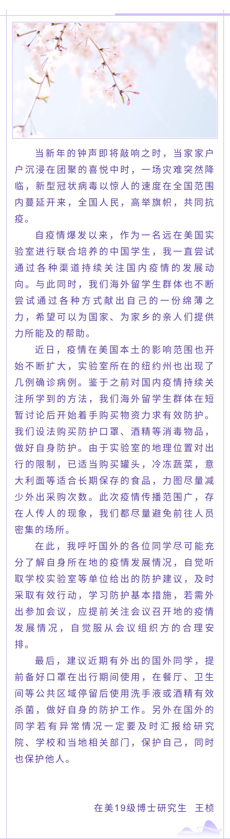 抗疫有我,前沿学声【二】——在美19级博士研究生 王桢