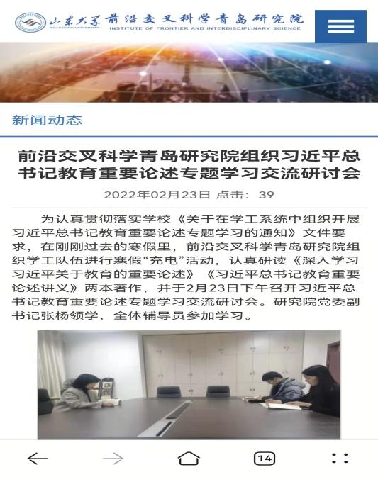 开展理论学习和专项调研。研究院组织交流研讨会,深入学习领悟了习近平总书记关于教育的重要论述,会议部署本学期理论学习活动要以自学为主,秉持“精耕细作”精神,定期到学生、老师群体中开展专项调研,根据反馈吸取采纳更多更好的理论学习与工作实践方法,以理论指导实践,以实践反馈理论,形成工作闭环,进一步推进学生工作高质量发展。