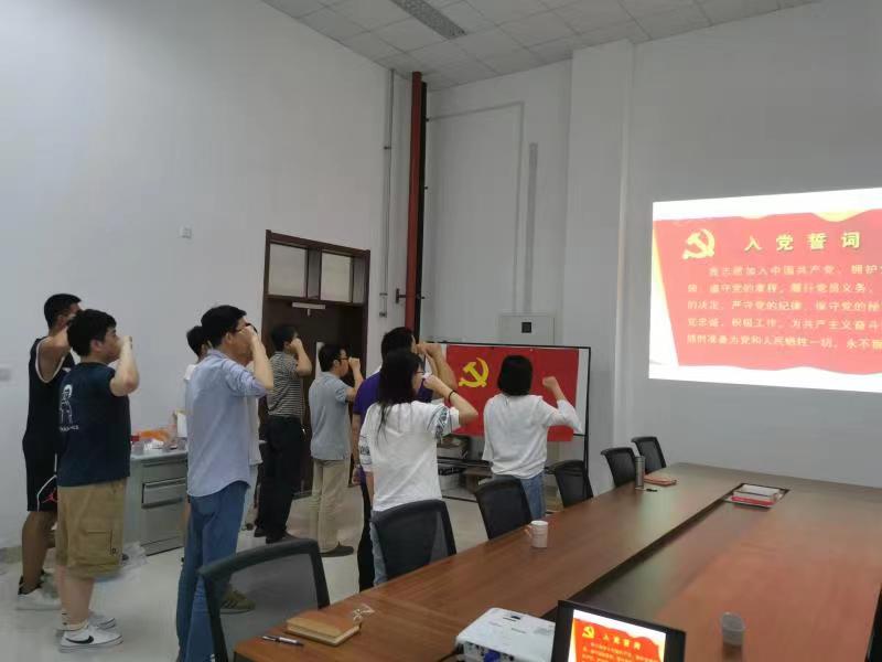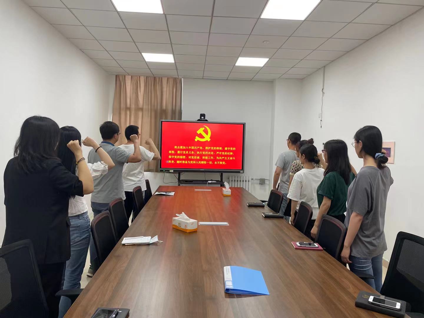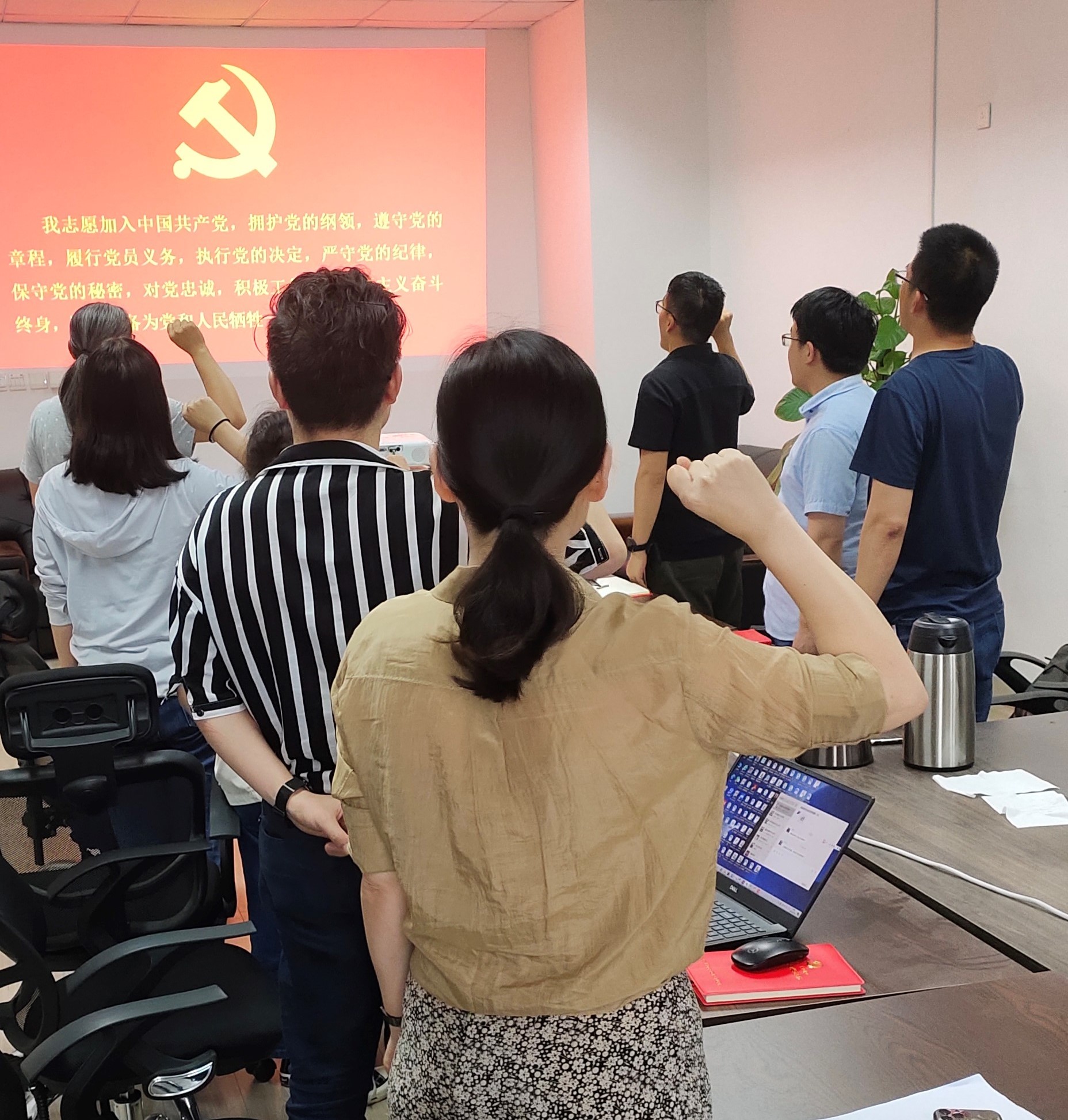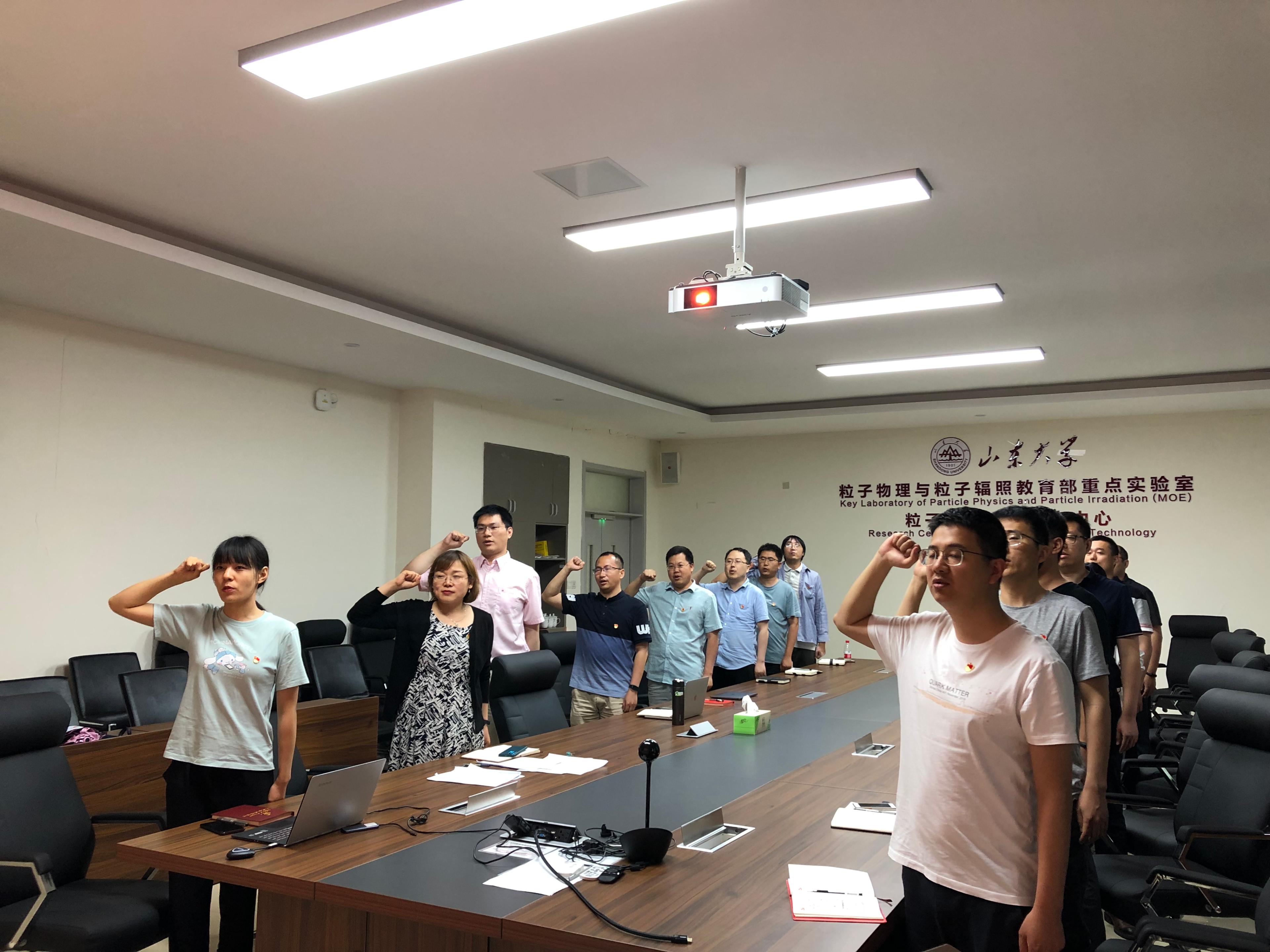 为隆重庆祝中国共产党成立100周年,深入开展党史学习教育,进一步加强党员日常教育管理工作,“七一”前夕,前沿交叉科学青岛研究院组织开展党员重温入党誓词活动暨新党员入党宣誓仪式。
