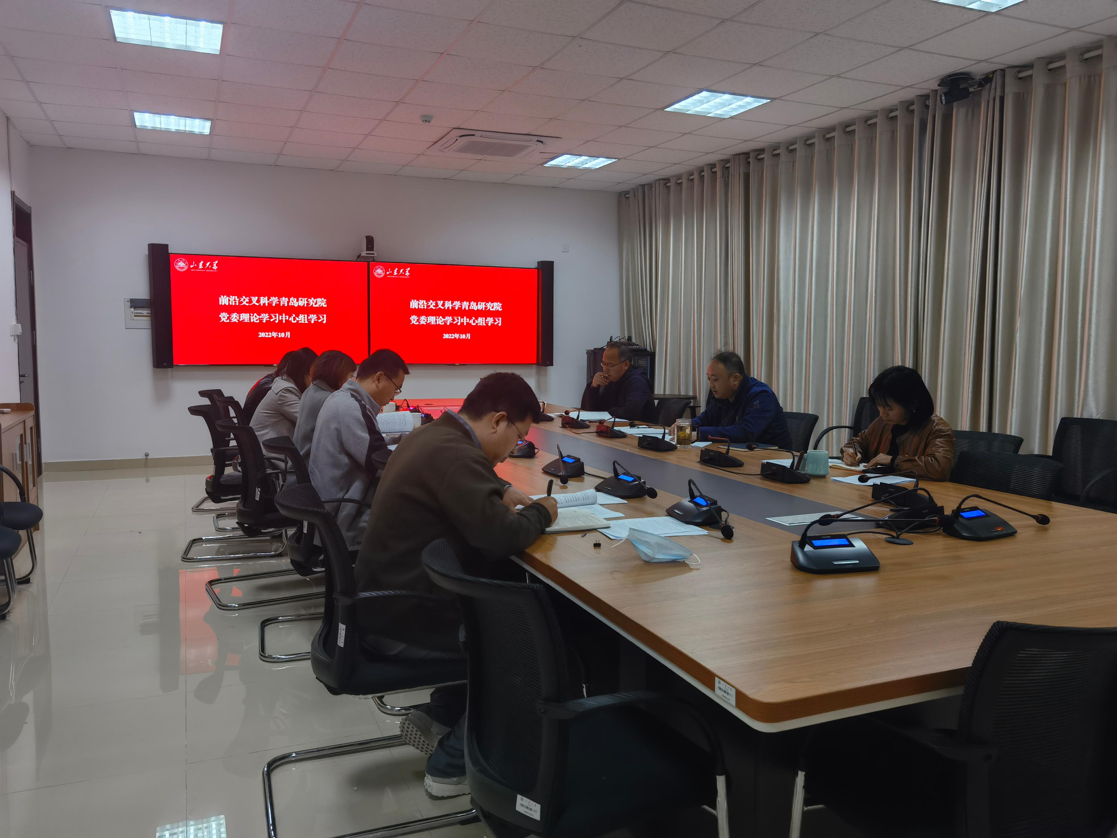 10月26日,前沿交叉科学青岛研究院党委书记赵罡主持召开研究院党委理论学习中心组会议,专题传达学习党的二十大精神,研究部署贯彻落实工作。