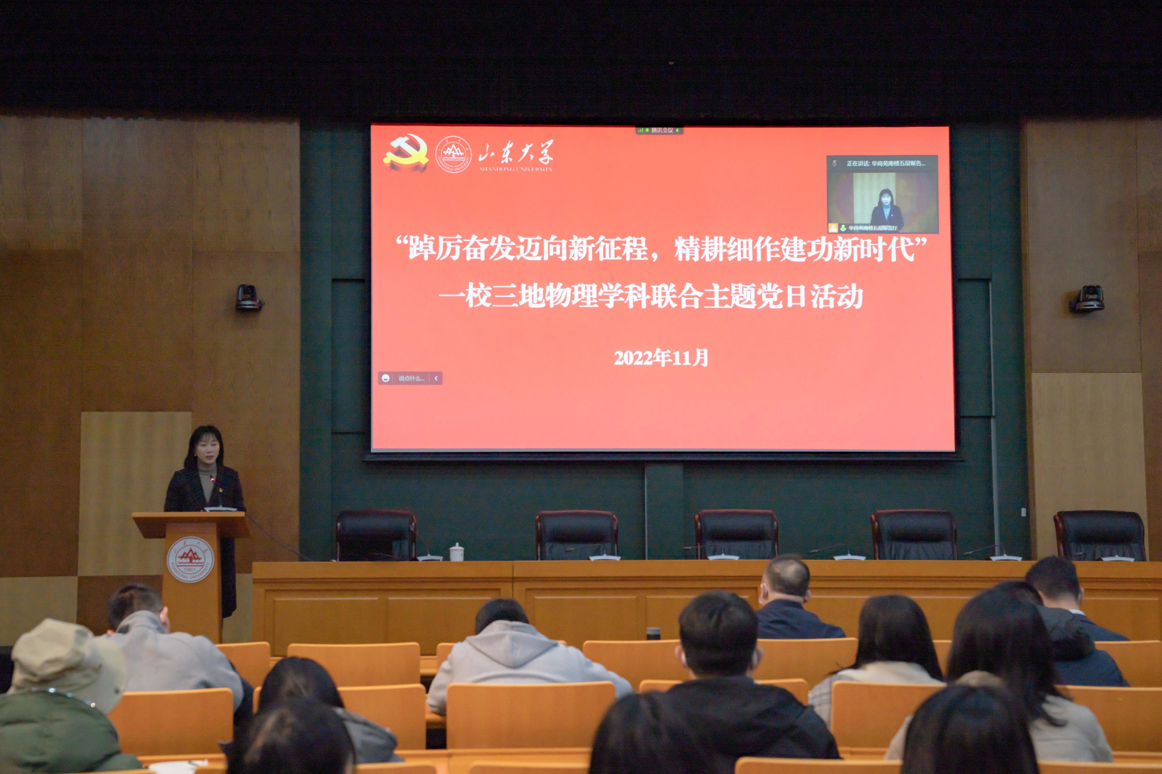 为深入学习宣传贯彻党的二十大精神,切实将思想和行动统一到党的二十大精神上来,凝心聚力共谋学校物理学科高质量发展,11月16日,物理学院党委、空间科学与物理学院党委、前沿交叉科学青岛研究院党委联合主办“踔厉奋发迈向新征程,精耕细作建功新时代”一校三地物理学科联合主题党日活动。