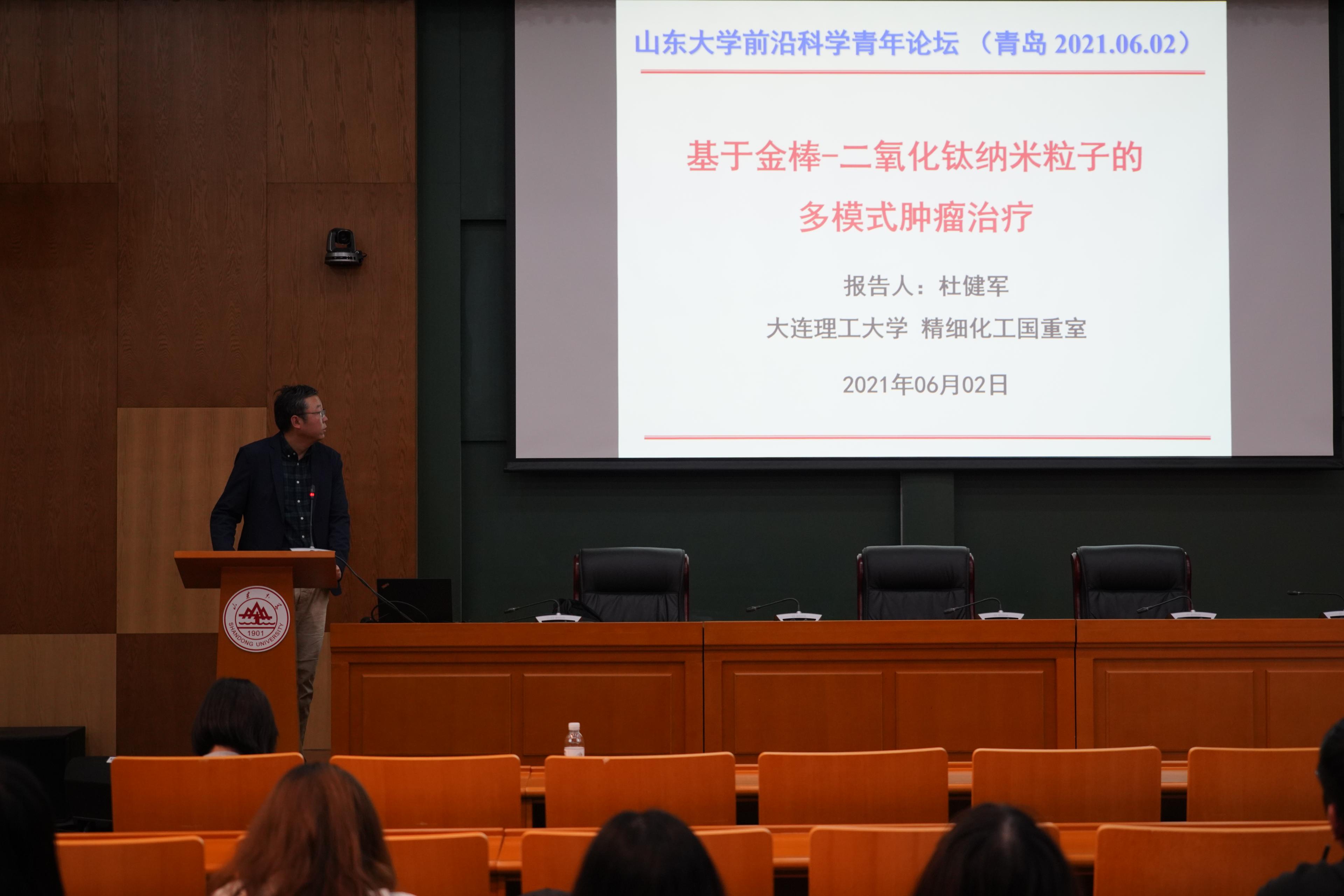 2021年6月2日下午4:30伟德国际1946源于英国前沿科学青年论坛2021年第2期如期举行。中国大连理工大学杜健军教授在伟德国际1946源于英国青岛校区华岗苑南楼五层学术报告厅作了题为“基于金棒-二氧化钛纳米粒子的多模式肿瘤治疗”的讲座。前沿交叉科学青岛研究院教授宋锋玲主持本次讲座。研究院部分师生参加本次讲座。