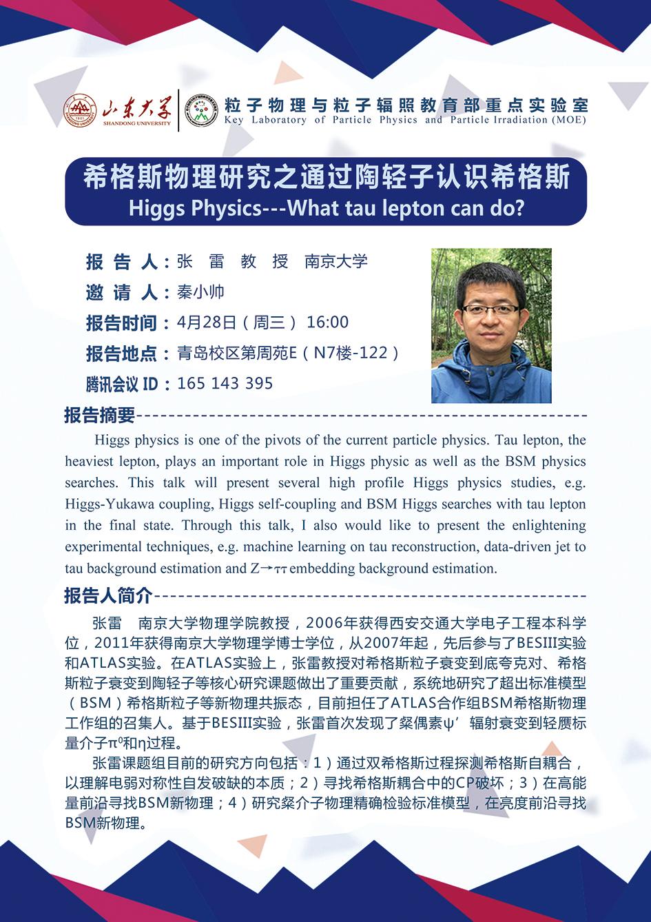 【21-4-28】 张雷:Higgs Physics---What tau lepton can do?