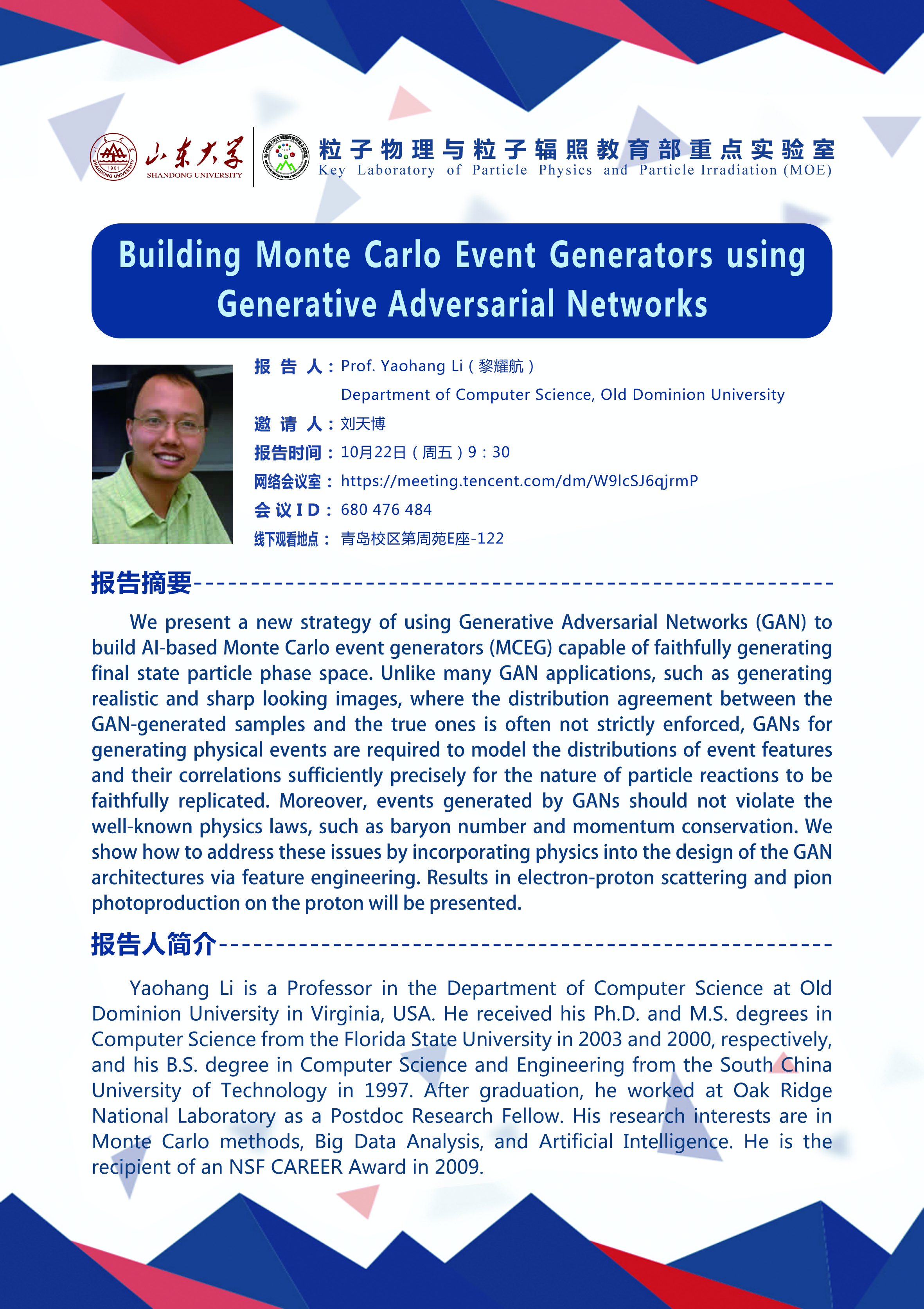 【21-10-22】黎耀航:Building Monte Carlo Event Generators using Generative Adversarial Networks
