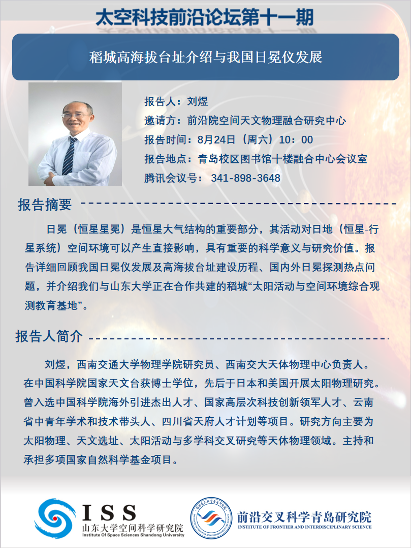 【24-8-24】太空科技前沿论坛第十一期:稻城高海拔台址介绍与我国日冕仪发展