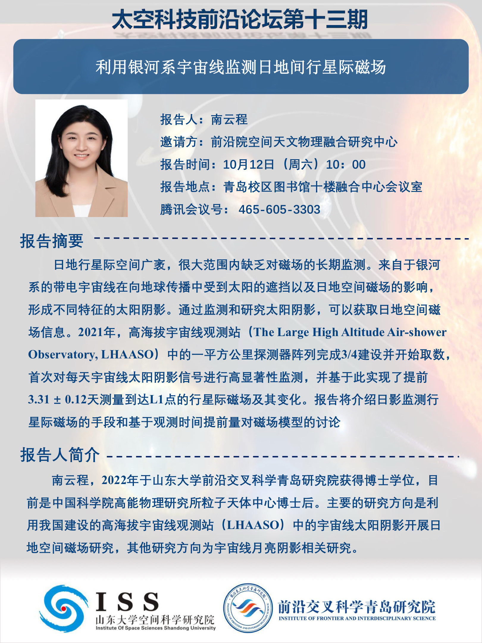 【24-10-12】太空科技前沿论坛第十三期:利用银河系宇宙线监测日地间行星际磁场