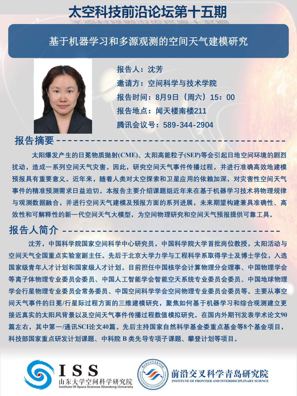 【25-8-9】太空科技前沿论坛第十五期:基于机器学习和多源观测的空间天气建模研究
